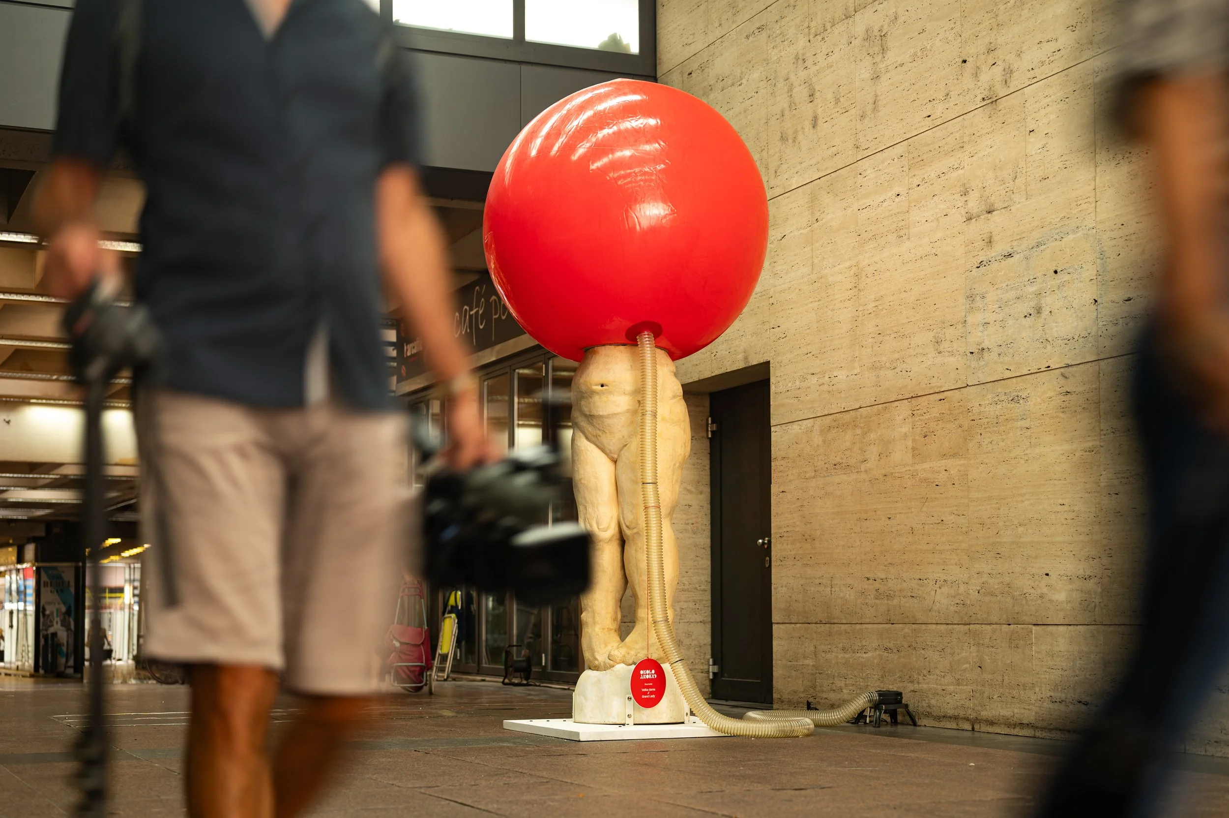 Grand Lady is a monumental sculpture whose scale, the choice of materials, colours and structures, and the relation between the form, the female organic body compared to the geometric form, creates a sense of tension. With its presence in space, the sculpture draws attention to the importance of the awareness of transformation between different states, both in nature and in the life of man.